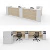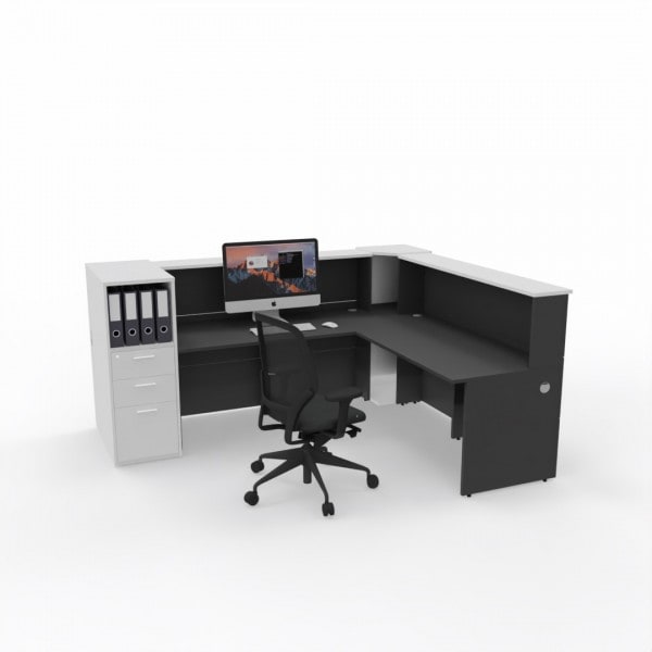 Salon Reception Range makes a great first impression. It offers a private desk surface, side storage and a standing writing surface for visitors. The Corner Reception counter includes reticulation for cabling keeping your reception neat and presentable. The reception front panels are ideal for mounting company signage